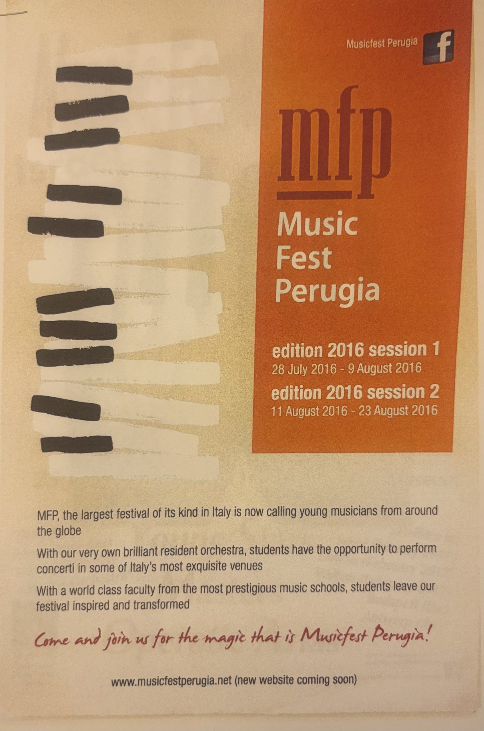 Music Fest Perugia, the largest music festival for young musicians in Italy, is held every summer in the beautiful city of Perugia. We are a performance institute, our emphasis is on providing the possibility of performing, and experiencing an array of outstanding professors from all over the world.
