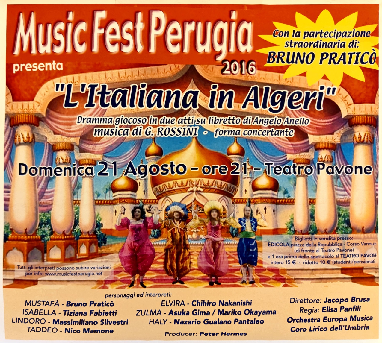 On August 21 2016 MusicFest Perugia produced with great success the Opera L'italiana in Algeri by G. Rossini at famous Teatro Pavone.